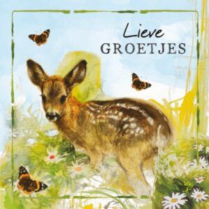 Wenskaart uit de serie Rien Poortvliet – Boerderij. Formaat: 13,5 x 13,5 cm. Per 6 stuks.